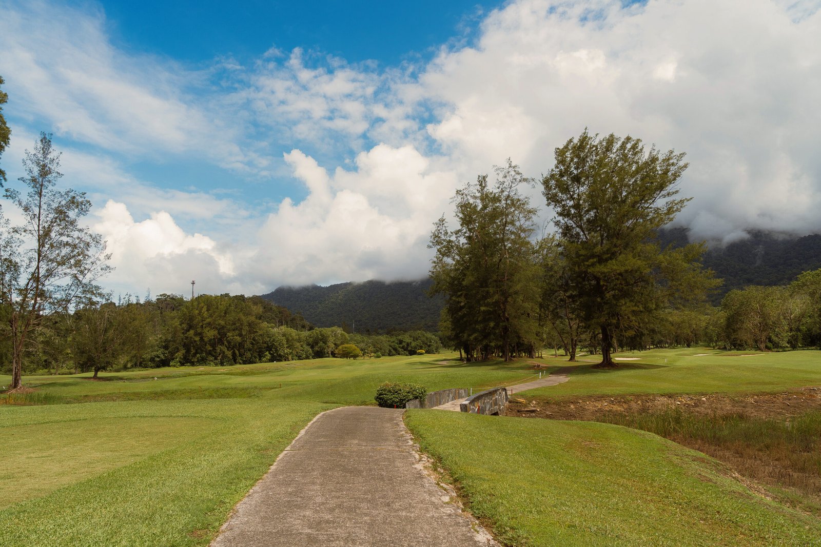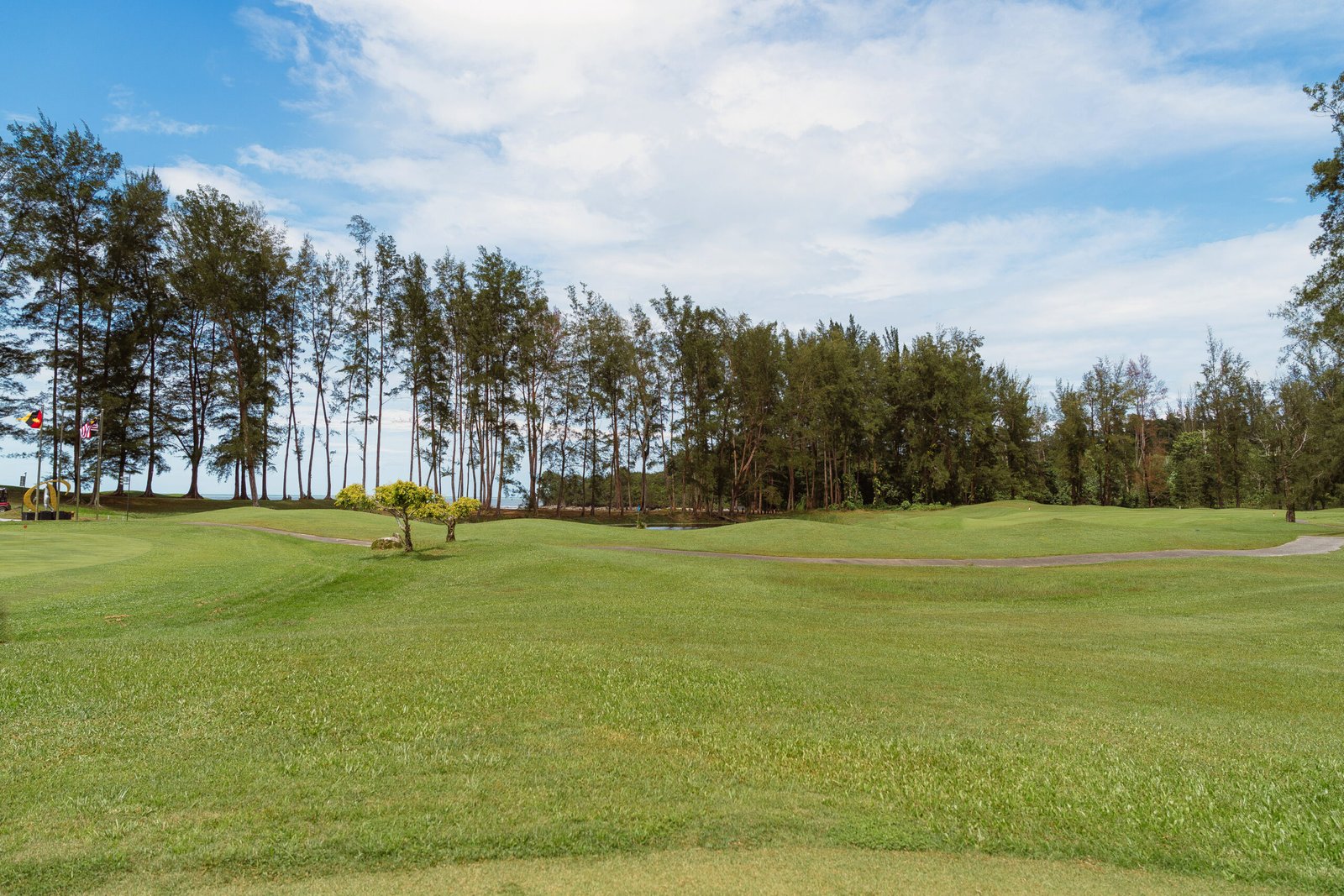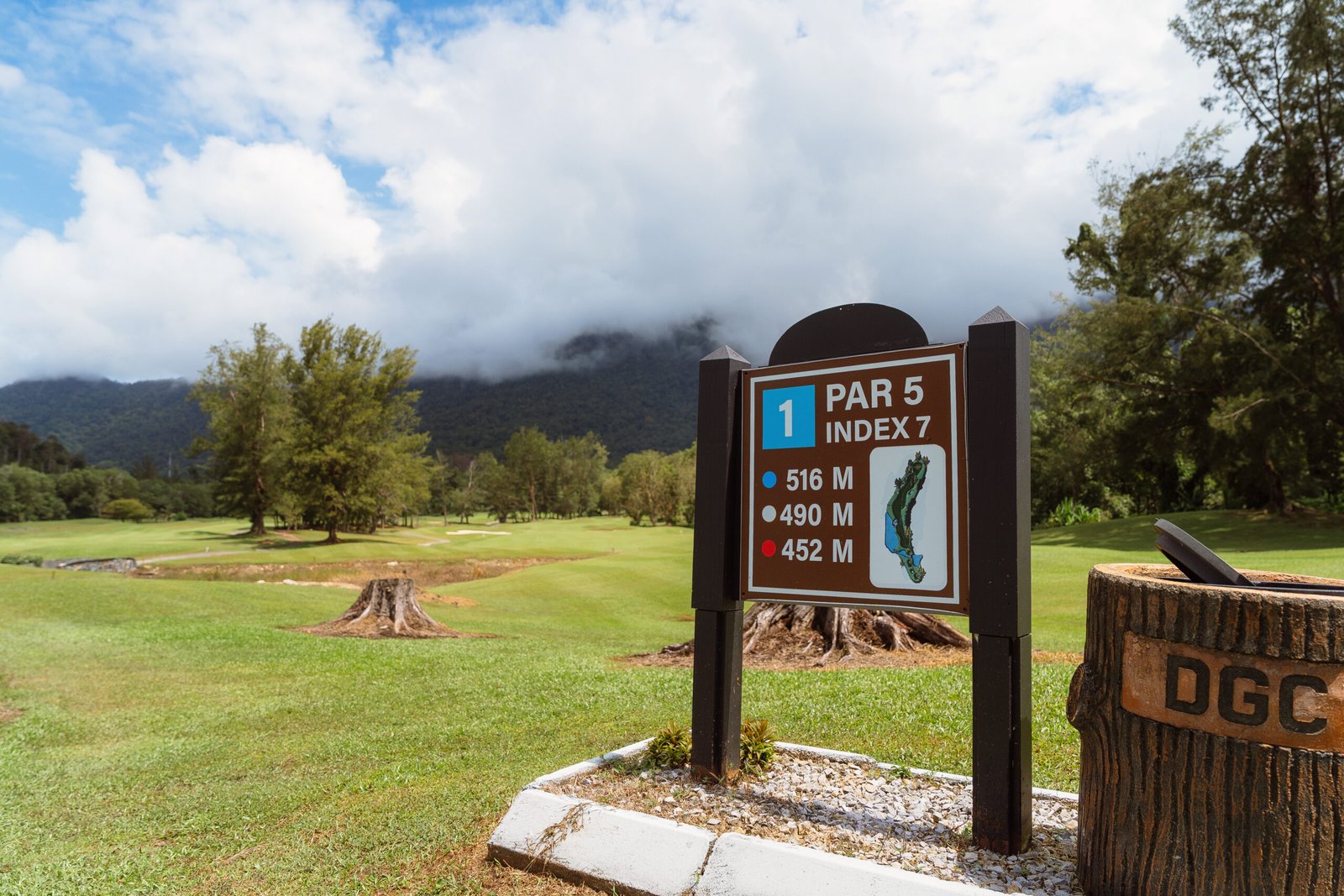 Hole 1 warmly welcomes golfers into the peaceful mountain-side landscape of Damai Golf & Country Club. Set against the calm presence of the surrounding mountains, the long, flowing fairway invites you to a calming tee shot. Trees frame the left while water runs along the right, encouraging focus without pressure. Players are invited to find their rhythm rather than chase distance, making it a comfortable start for all skill levels. Bunkers added as a gentle challenge during your play. This serene opening reflects the spirit of Damai, balance, calm, and enjoyment of the game.