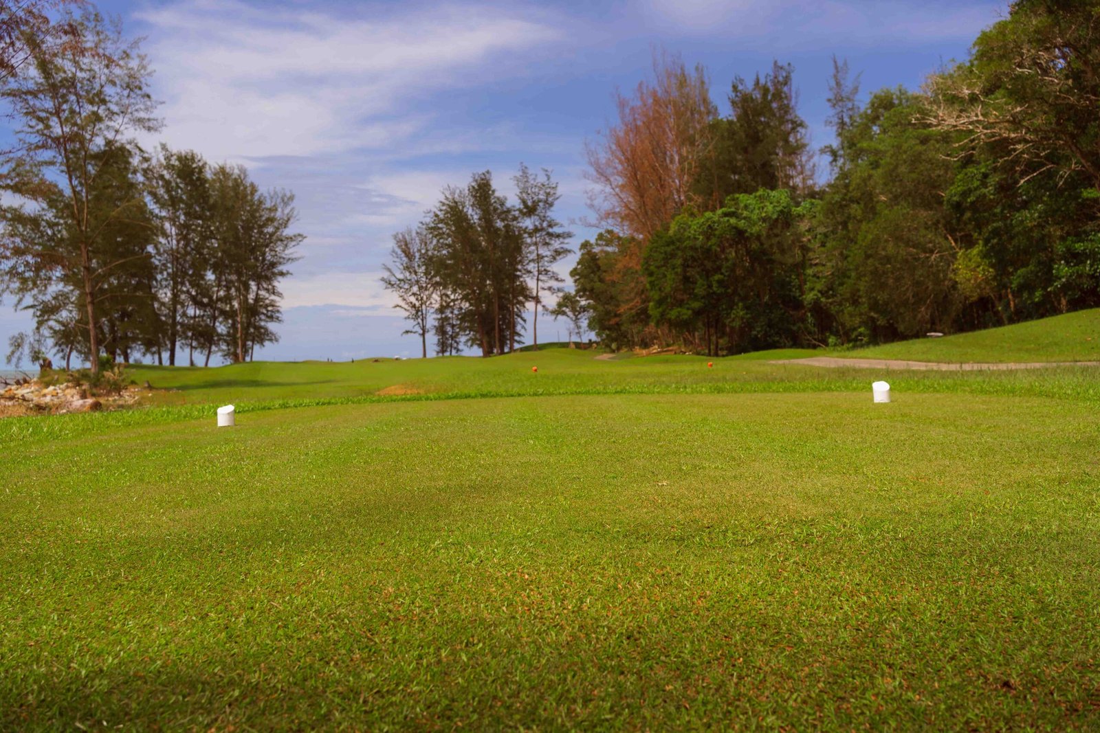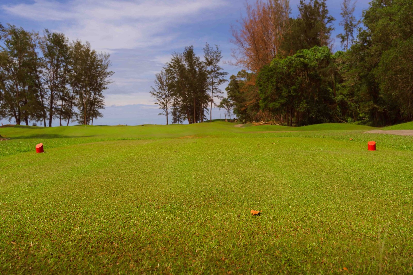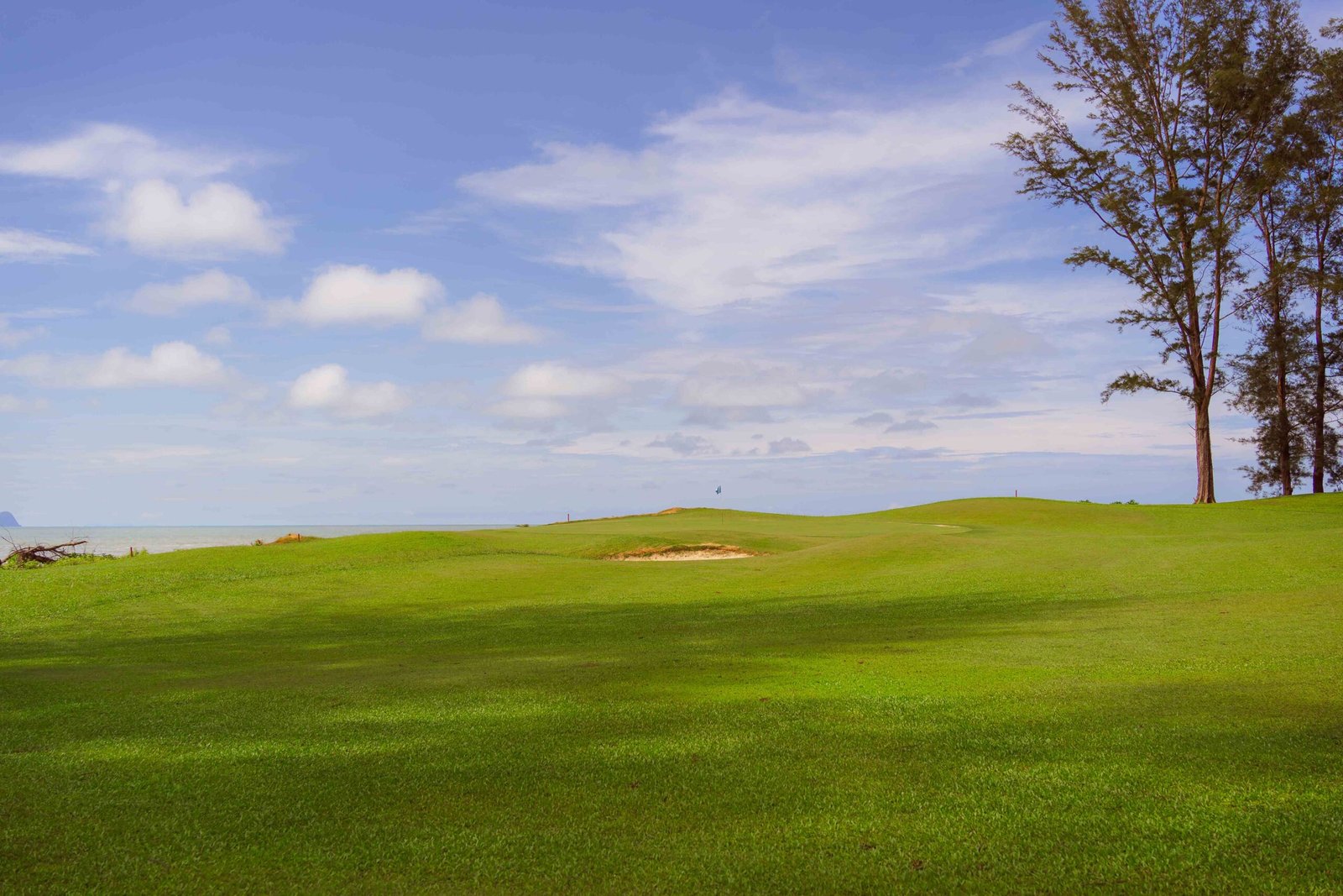 This 358m Par 4 is a test of bunker navigation. The fairway is pinched by a large bunker on the left and another on the right, requiring a precise drive through the gap. Thick clusters of trees line the entire left side, while the right side features an Out of Bounds (OB) boundary. The approach shot is equally daunting, with a deep bunker guarding the front-left of the green. Accuracy and club selection are paramount to finishing this seaside hole at par.
