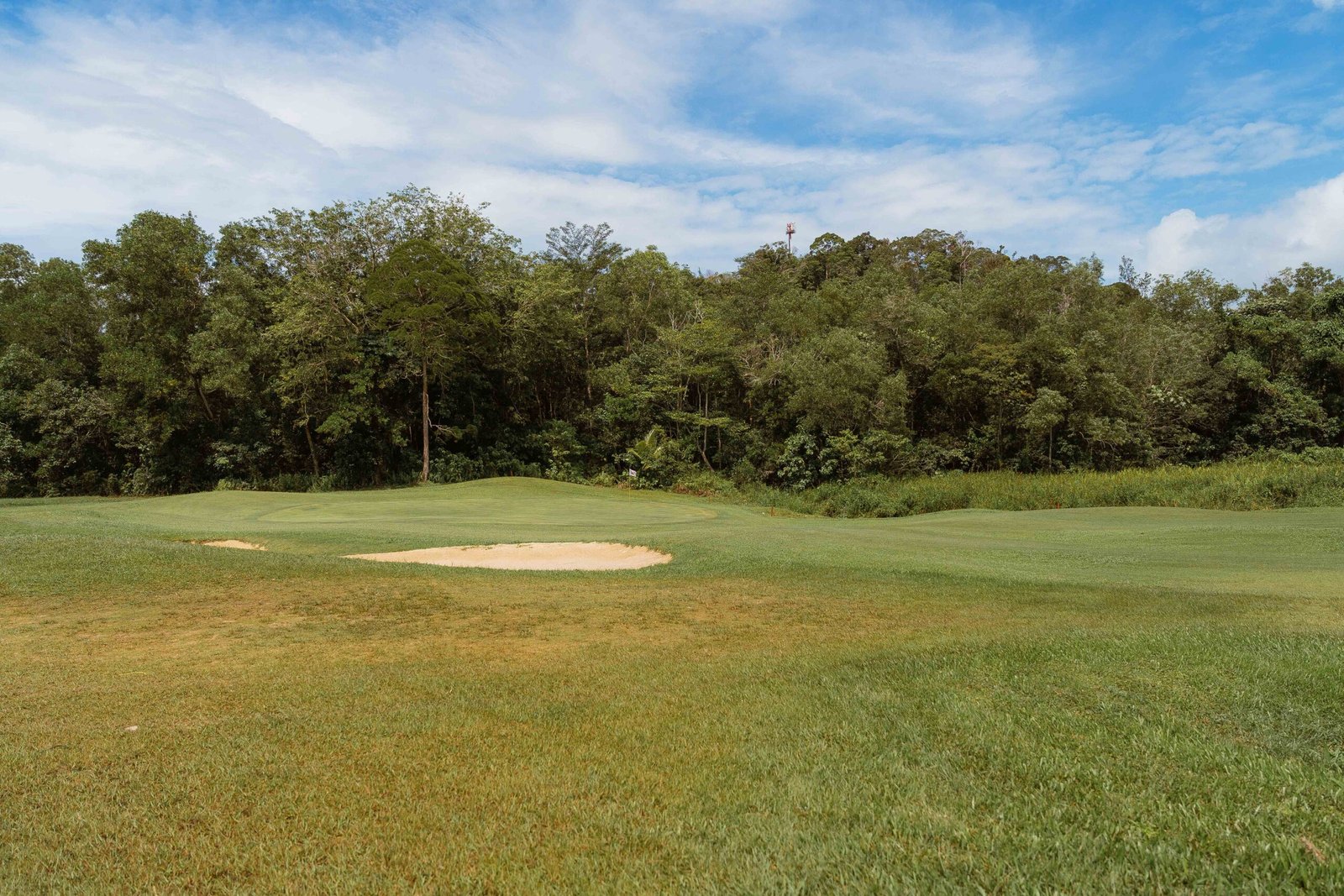 As the longest hole on the mountain side at 503m, this Par 5 is a true test of endurance. The journey to the green involves navigating a fairway split by a rocky creek and a large water hazard on the left. OB remains a constant threat on the right. The elevated green is tucked behind a series of three deep bunkers on the right side, requiring a masterful third shot to find the birdie surface.