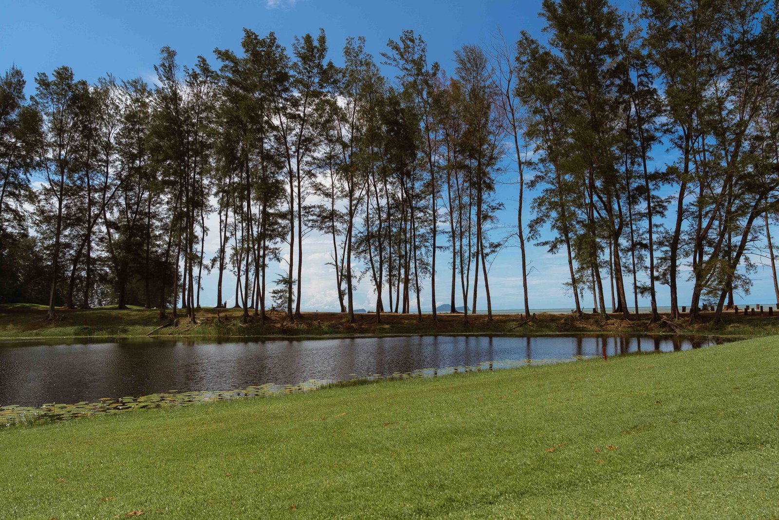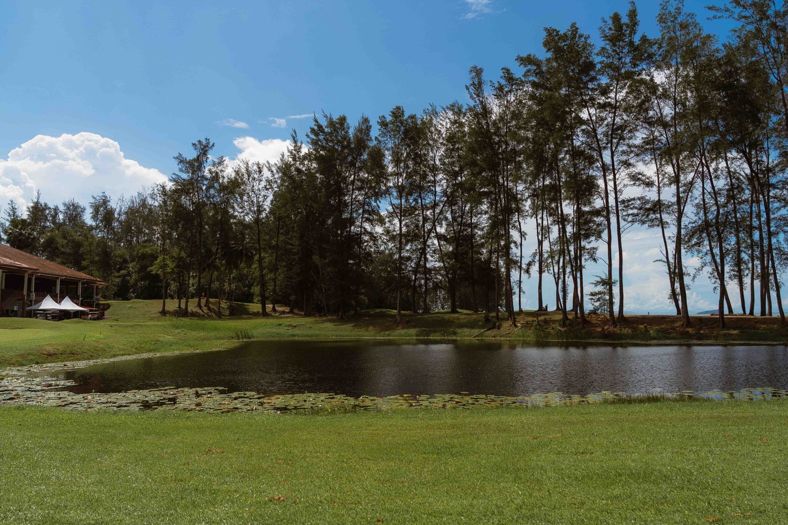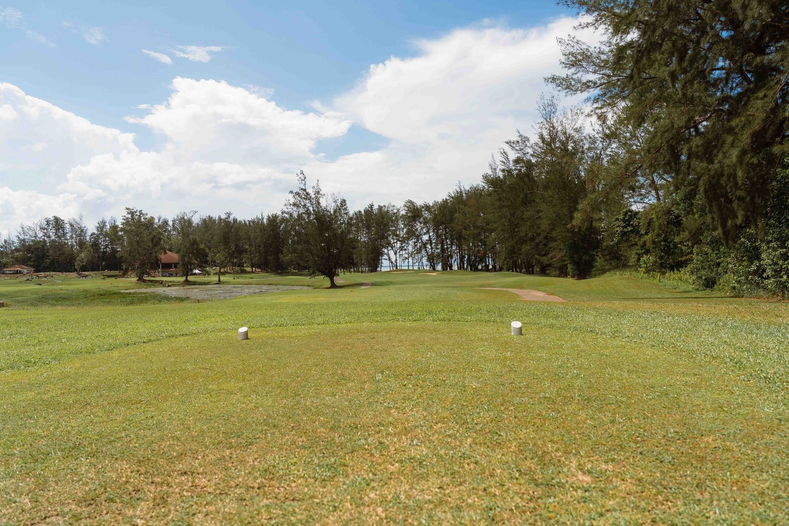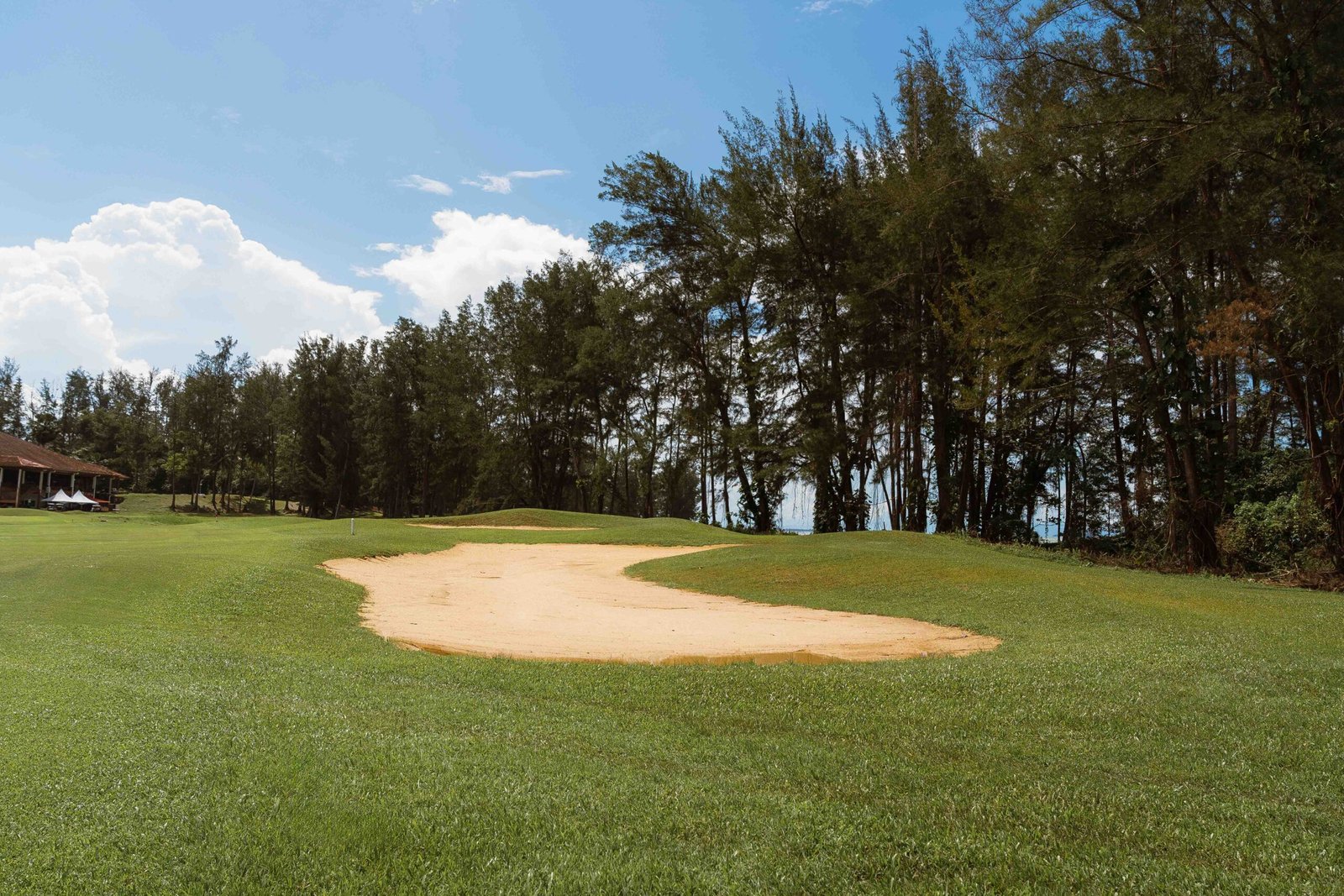 Completing the mountain loop, Hole 9 is a sweeping dogleg right. The drive must avoid the water hazard on the left and the OB line on the right. A strategic line of trees guards the corner of the dogleg, requiring a high-fading tee shot to reach the optimal landing zone. The approach into the final green is well-protected by a deep bunker on the right, ensuring a demanding finish to the front nine.