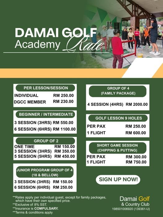 All rates are subject to 8% SST (2024). Daily insurance is compulsary. Twin sharing buggy included. Caddy service requires advance booking of (1) one day .